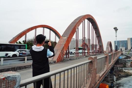 得知彩虹桥即将拆除重建,贵叔特意爬上自家小区8楼的天台。在那里,他认真地记录着彩虹桥“最后的时光”。记者注意到,连日来,越来越多的市民从各地赶来彩虹桥。他们在彩虹桥上漫步,一边走,一边拍,释放着自己心中的不舍。二月的最后一个星期,佛山人深情告别了陪伴多年的音乐台,然后又要在三月的第一天,依依惜别这座陪伴了33年的老桥。