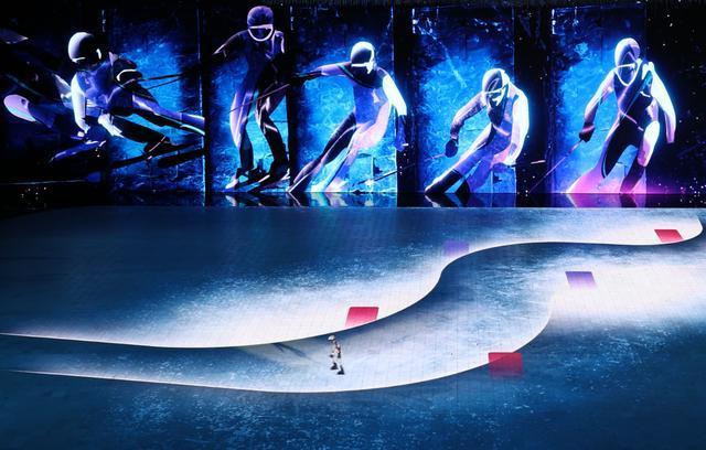 “AR搭建”的滑雪跳台、裸眼3D“全景地屏”、光色变幻“雪花穹顶”⋯⋯开幕式现场,记者感受到的十足科技感,都归功于主舞台背后的那块超长大屏。