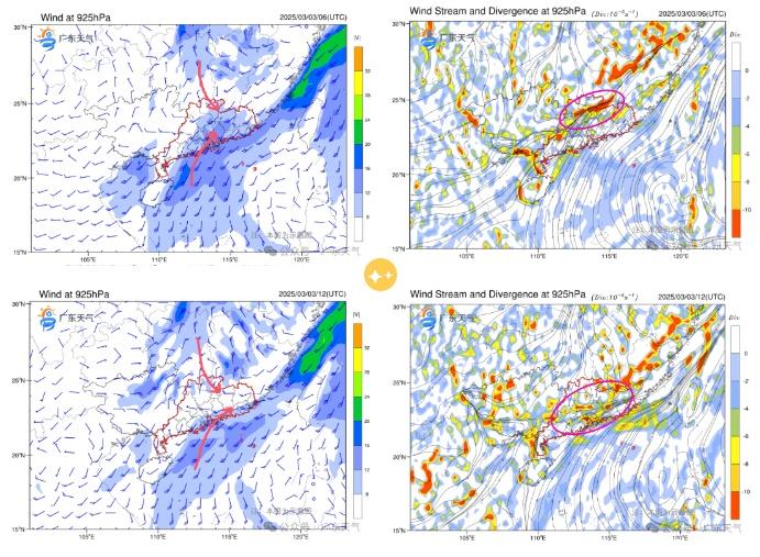 1日到2日,随着低空急流区的东移影响,低层南风加强,处于风速辐散区的广东,大部分地区云量较多,部分市县有弱降水。