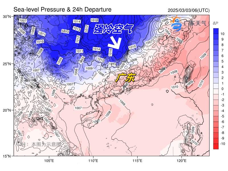 在南支槽的引导下,新一股强冷空气于3日起自北向南影响我省,上午到达粤北地区,傍晚到达广州,4日凌晨抵达南部沿海。中北部市县平均气温下降7~10℃,南部市县下降5~7℃。