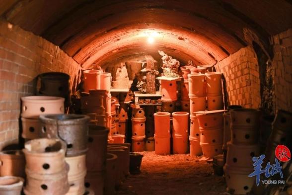 龙窑内放满了烧制的陶塑