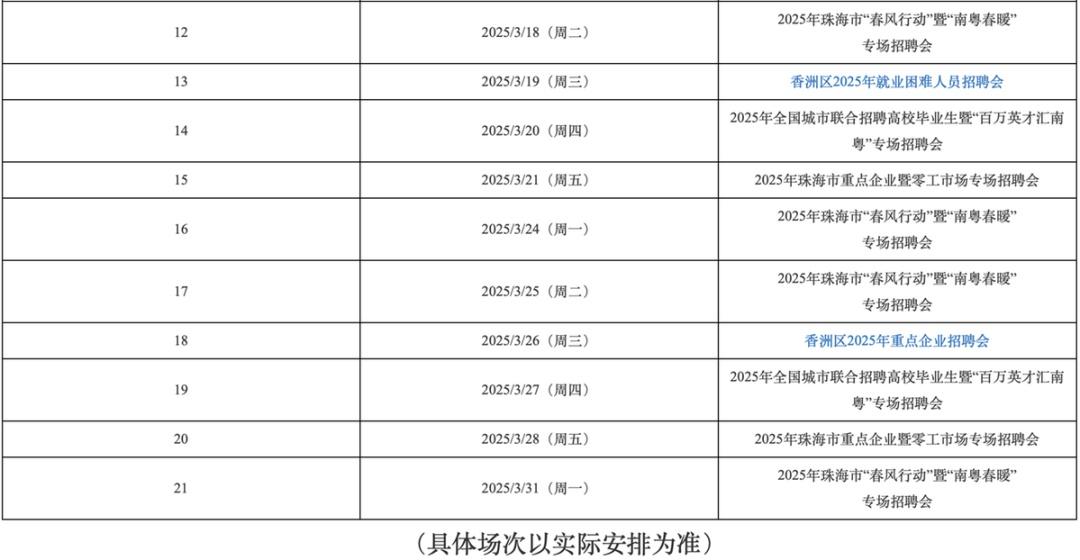 珠海市人力资源市场3月招聘活动计划