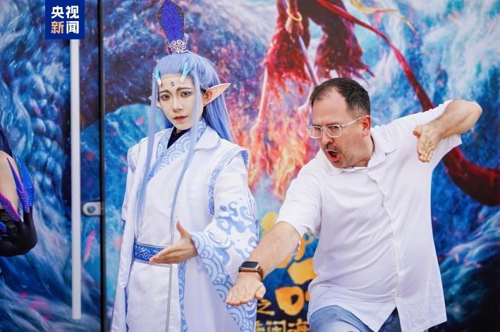 在广东东莞,因电影《哪吒2》的爆火,位于东莞万江镇的IMAX GT巨幕吸引了大批影迷前来观影,周边潮玩产品订单更因此“爆单”,一部电影带火一座影院、一条潮玩生产线在这里成为现实。今天,又因这部电影,聚集了一批热情的外国电影粉丝。他们在东莞玩起了“哪吒”快闪、与国漫形象真人互动、体验剧中人物妆造等,这种近距离与影像中的动漫人物频频“呼应”,也为他们带来了电影之外延展的惊喜。