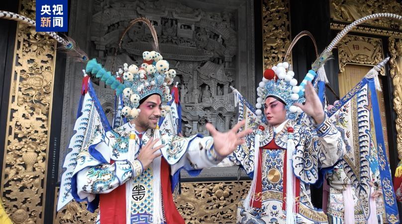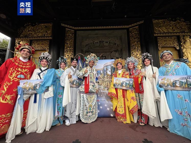 亲自体验粤剧扮相、在水雾熏沐的广福台体验戏曲的唱、念、做、打,水袖舞起的是外国观众、游客对传统中华文化沉浸式的走进与喜爱。