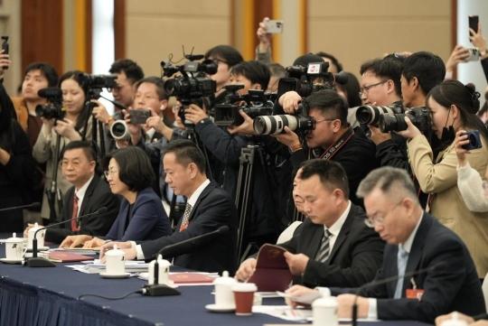 3月6日下午,十四届全国人大三次会议广东省代表团举行开放团组活动。记者获悉,此次参与报道的媒体共有107家,近半数是境外媒体,记者共267人,外媒记者66人。