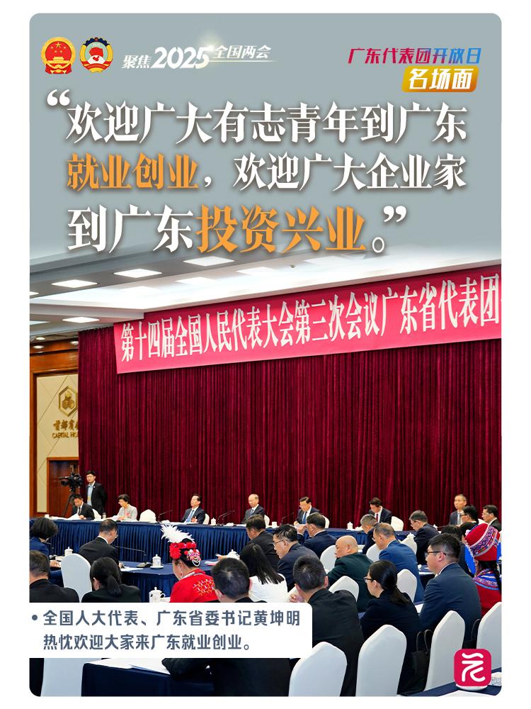 3月6日15时,十四届全国人大三次会议广东省代表团举行开放团组会议,审议政府工作报告,审查计划报告和草案、预算报告和草案,并回答记者提问。