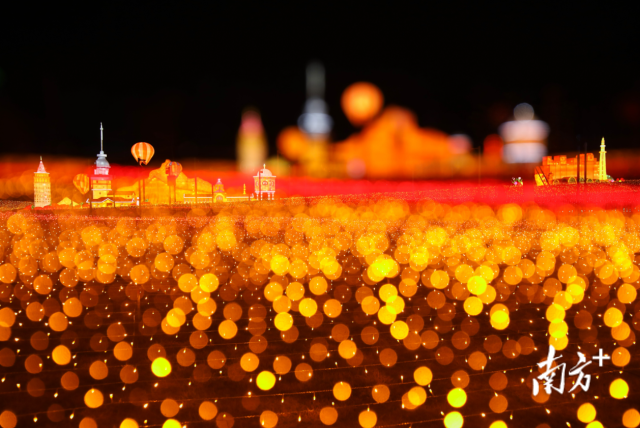 璀璨灯火间,游客既能感受古老的中华民俗花灯,又能领略微缩版的湾区风光——从木棉花开的南沙风光,到云山珠水的羊城风物,再到多元共融的湾区风情……“湾区画卷·产业腾飞”灯组生动展现11座城市的地标建筑、文化符号和传统工艺,为粤港澳大湾区勾勒出一幅充满活力的蓝图。
