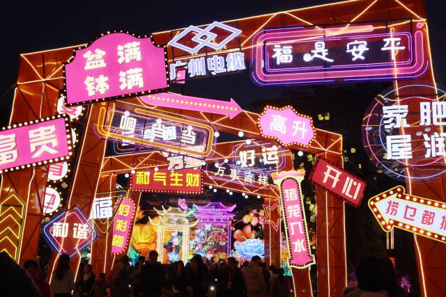 漫步彩灯之间,岭南之韵、湾区之美、中华之盛尽显。
