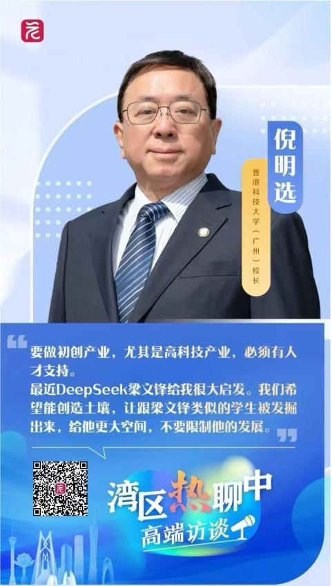 身处大湾区,一所初创两年多的大学,应该如何培养创新人才?在DeepSeek创始人梁文锋和《哪吒2》的导演饺子身上,一校之长会得到什么启发?近日,香港科技大学(广州)校长倪明选在接受广州日报新花城记者专访时表示,相比于发表文章,做科研更重要的目的是带动未来经济发展,解决未来产业的问题。大学必须要为创新创业人才提供成长的土壤。