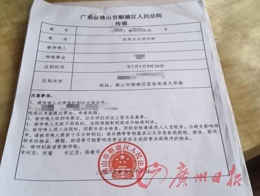 伍阿姨收到的法院传票