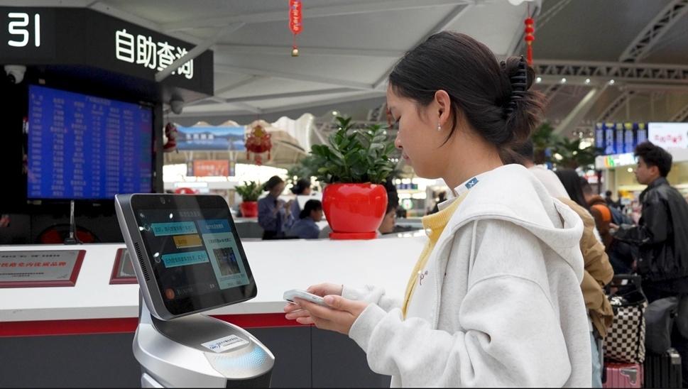 为方便旅客快速进站乘车,广州南站推行“线上+线下”相结合的指引方式,线上依托铁路12306平台,研发交通接驳智慧系统,旅客购票成功后点击手机短信链接,就能知晓最短进出站和便捷换乘路线信息;线下在车站一层、三层设置5台智能机器人,人机对话就能轻松咨询检票口、洗手间等信息。