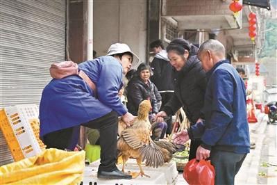 “墟日”是乡镇约定俗成的集市交易的传统日子,每逢农历月尾数一、六日即是江湾镇墟日。走进江湾镇主街,各类摊档整齐有序地排列着,琳琅满目的商品让人目不暇接,新鲜的水果、香甜的瓜果、精美的饰品应有尽有,现场叫卖声、讨价还价声此起彼伏。经过清理和修复,江湾镇主街恢复了往日的整洁和活力,街道两旁商铺已全部开门营业,同时新增了不少“新来”的流动摊贩,日杂物品、农产品供应充足,“墟日”里的烟火气十分浓厚。