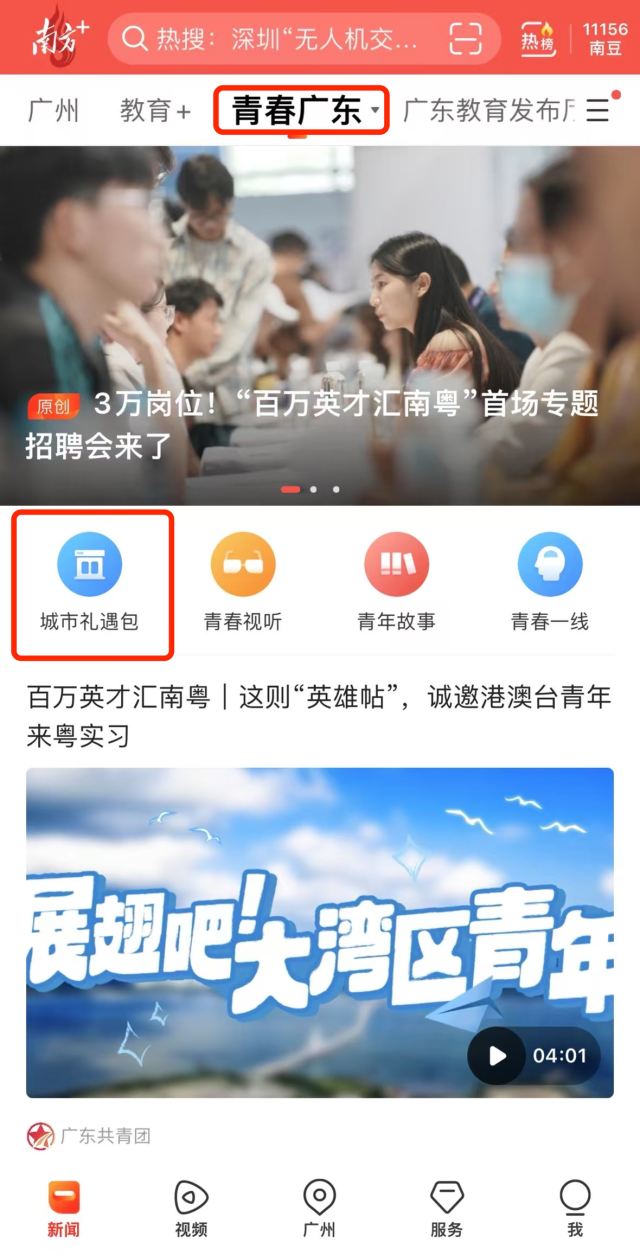 或打开南方+客户端“青春广东频道”,点击“城市礼遇包”入口,即可查询。