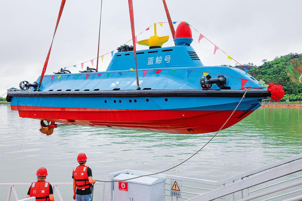 “蓝鲸号”高速可潜无人艇28日在广东珠海下水。