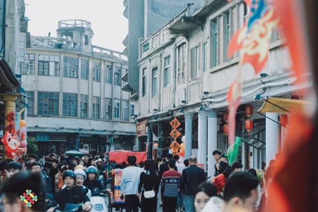 当游客跟随巡游队伍的步伐踏进揭阳古城骑楼街区,可以窥见古城“新旧交替”的活化进程:一侧新业态刚落地,一侧旧骑楼在修缮。