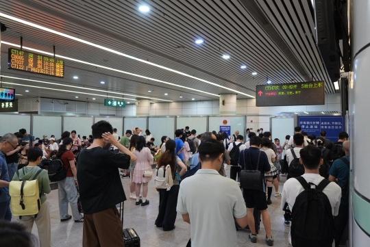 广州东站不少市民正在候车(广州日报新花城记者程依伦 摄)