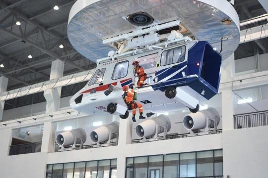 “这是国内首个能全要素模拟超强台风灾害的实景训练场。”负责台风水域灾害救援训练版块的消防员郭梓杰告诉记者,场馆顶部还安装了国内自主研发的直升机模拟器,能够实现多角度侧倾和俯仰运动,最大程度还原台风灾害下直升机救援的场景。