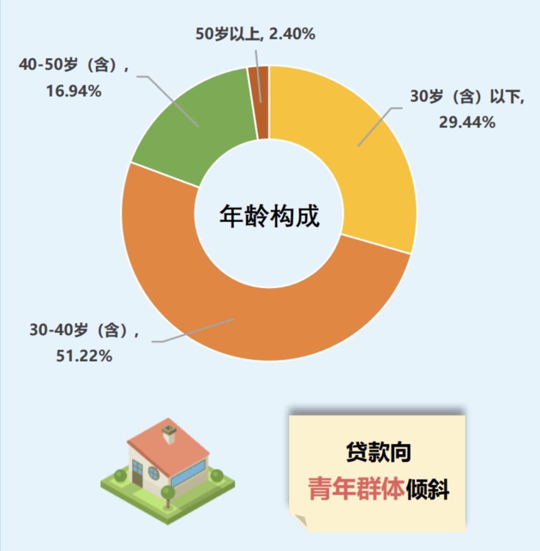 从贷款职工的年龄构成来看,30-40岁(含)比例最高(51.22%),其次是30岁(含)以下的29.44%,再次是40-50岁(含)的16.94%。结合购买首套住房贷款发放笔数占比89.46%的数据可见,广东省住房公积金贷款有力支持了青年群体——特别是首次置业的刚需人群购房。