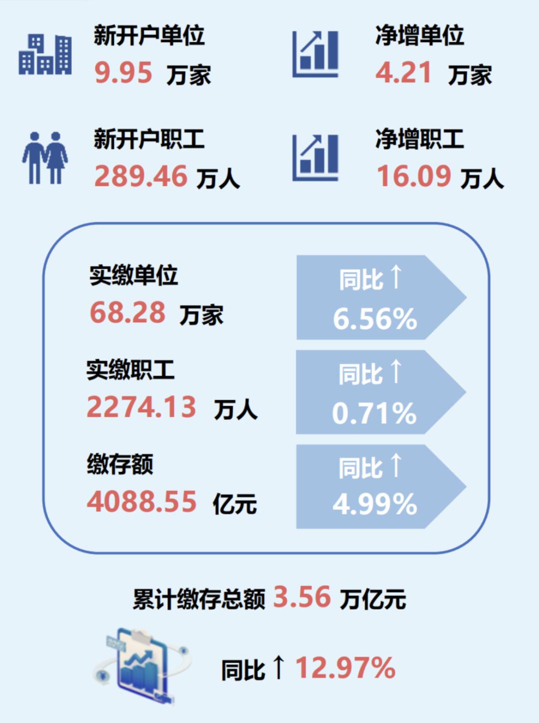 去年,广东省住房公积金缴存规模进一步扩大,惠及更多职工。2024年,全省新开户单位9.95万家,净增单位4.21万家,新开户职工289.46万人,净增职工16.09万人;实缴单位68.28万家,实缴职工2274.13万人,缴存额4088.55亿元,分别同比增加6.56%、0.71%和4.99%。2024年末,累计缴存总额35621.49亿元,比上年末增加12.97%。