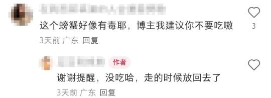 贴文下有不少网友留言提醒这类螃蟹不能吃,还有人留言倡导保护生态。