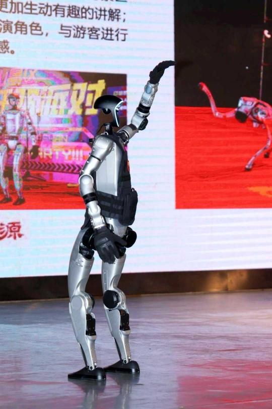 作为活动亮点之一,丹霞山景区AI赋能文旅产业发展,引入机器人与机器狗,在启动仪式上开启表演,绿美丹霞映衬着银色机身,游客们纷纷举起手机记录这科幻感十足的画面,用“科技+文旅”点燃韶城新热潮。