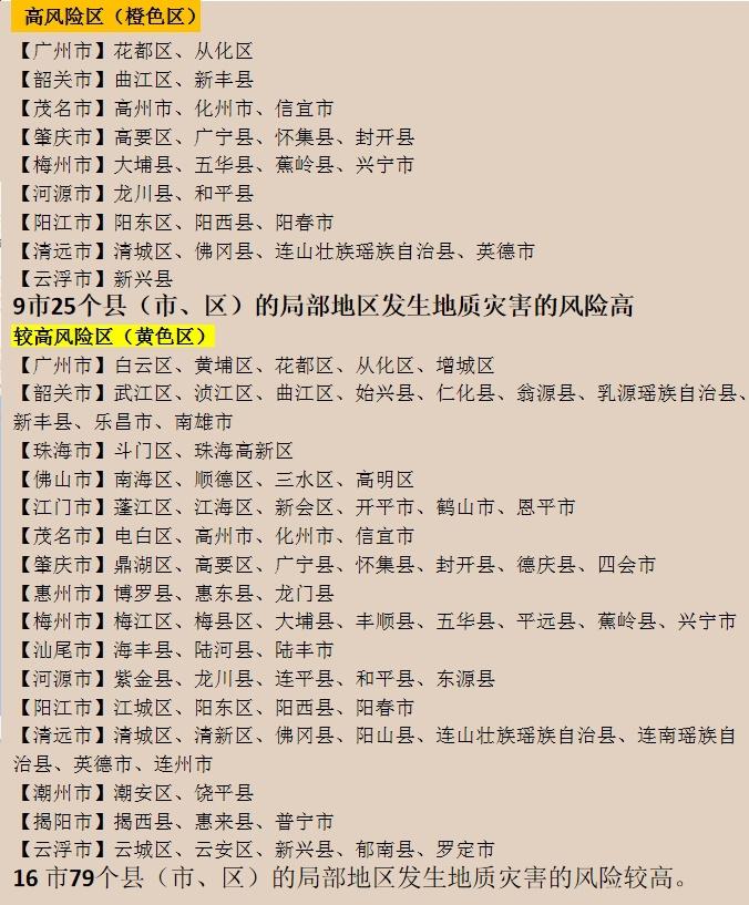 2025年“龙舟水”地质灾害趋势预测高风险区、较高风险区名单
