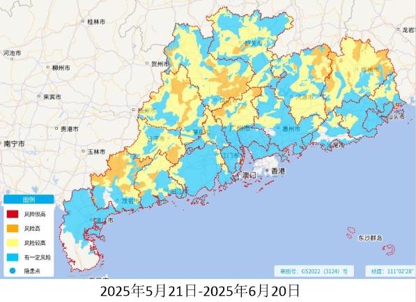 2025年“龙舟水”地质灾害趋势预测高风险区、较高风险区示意图