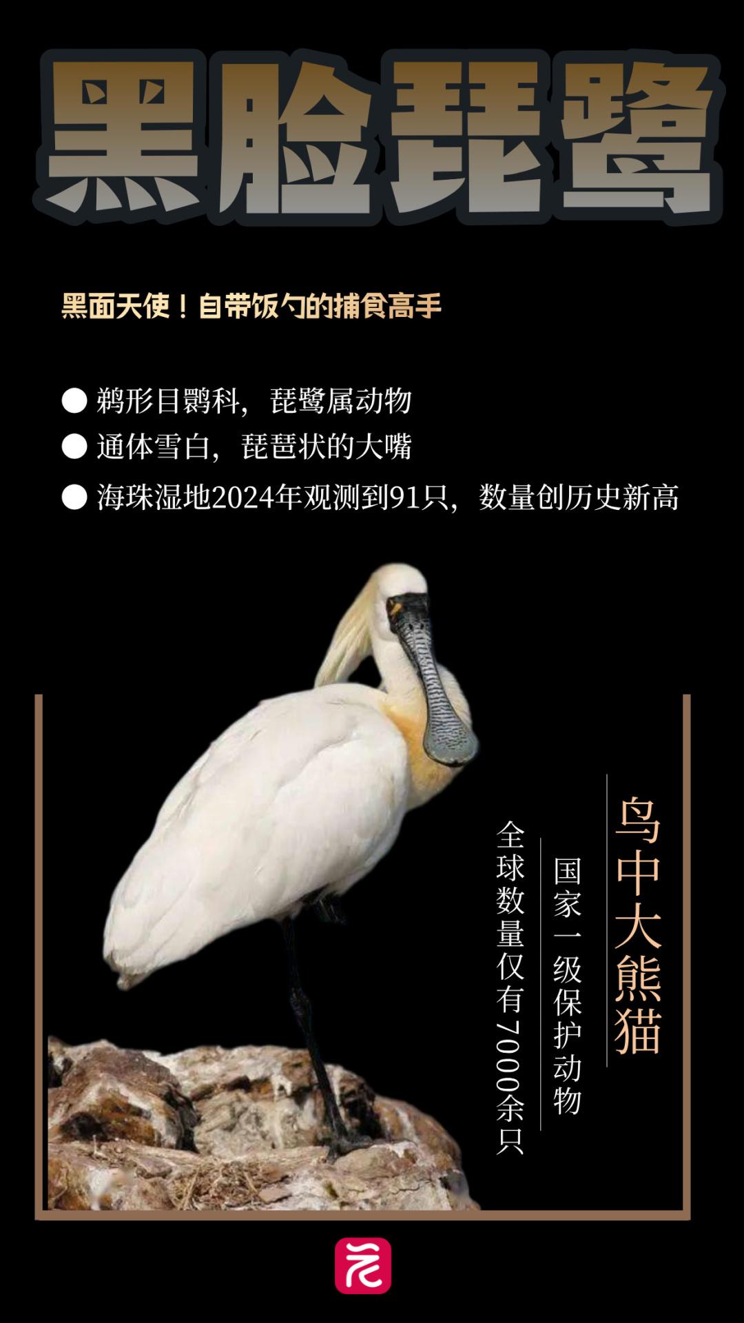 2024年,广州市生物多样性调查监测取得新突破,观测到黑脸琵鹭91只,数量创历史新高。