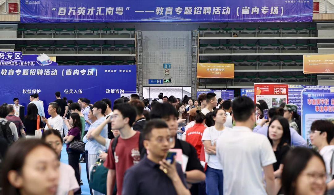 300多家单位携1.2万个岗位需求参会,5月25日,“百万英才汇南粤”教育专题招聘活动在华南师范大学大学城校园体育馆举行。