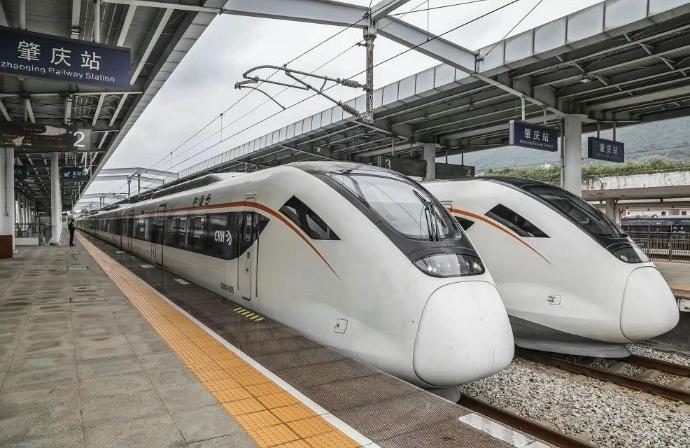 据测算,从番禺站(广州南)乘坐“特快”列车出发,到佛山西站、西平西站、肇庆站、小金口站用时分别压缩至约20分钟、25分钟、60分钟和70分钟。