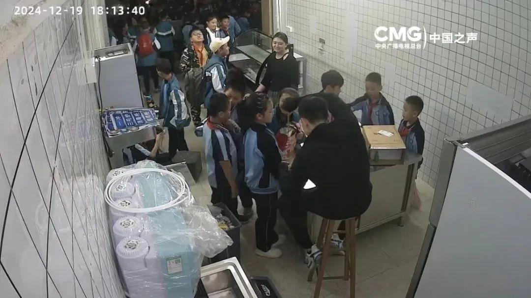 鞋店监控画面里,人满为患,邱智娟使劲靠边站,把位置让给孩子