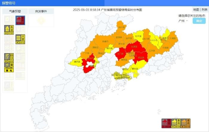 据气象部门报告,目前肇庆市端州区、鼎湖区、高要区以及四会市、德庆县部分镇街已发布暴雨红色预警信号,广宁县部分镇街已发布暴雨橙色预警信号,封开县已发布暴雨黄色预警信号,且降雨仍在持续。