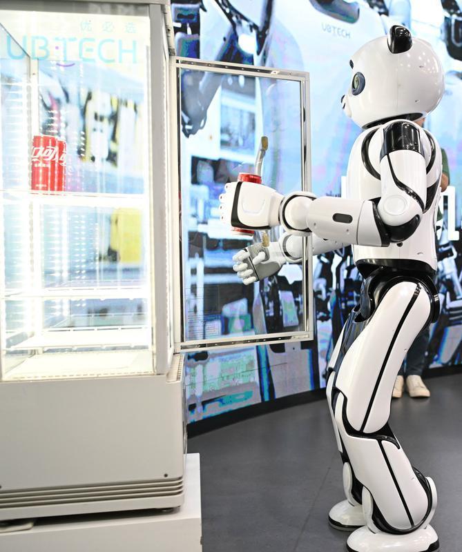 深圳市优必选科技股份有限公司工作人员与熊猫机器人“优悠”握手