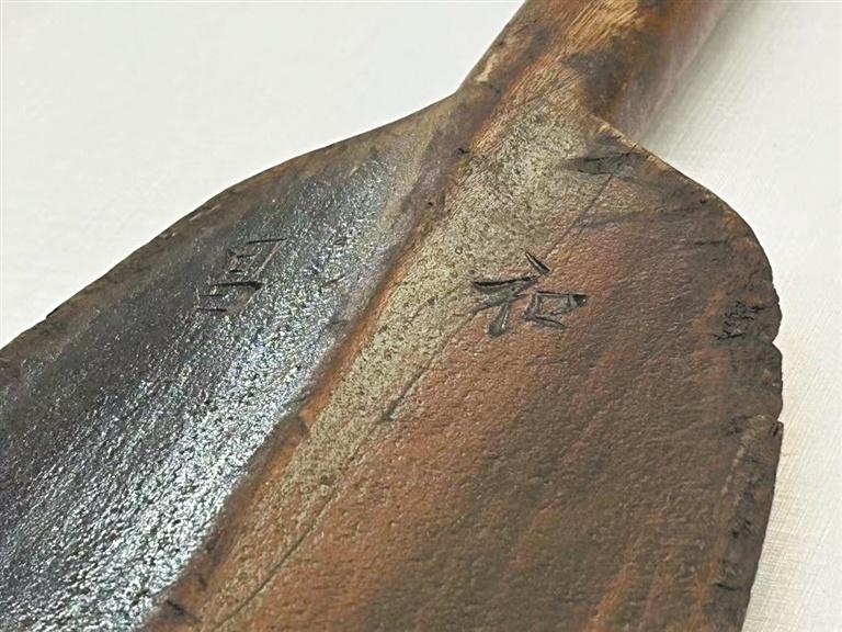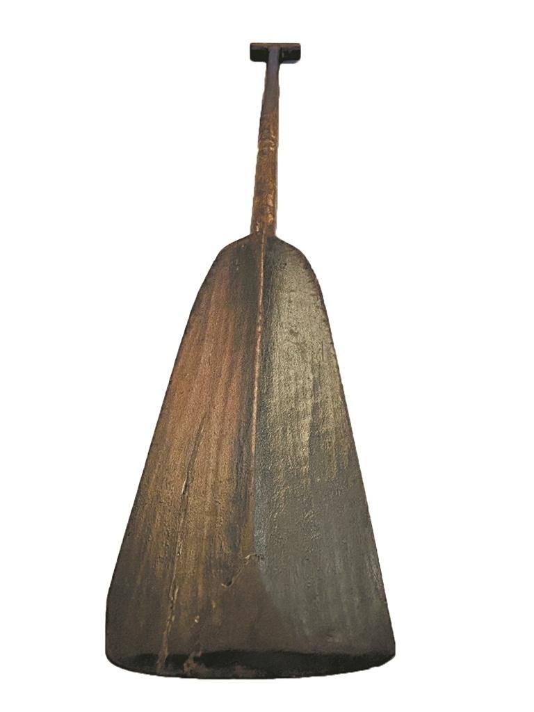 廖长亮爷爷传下来的龙舟桨。桨叶上肩部镌刻着用楷书书写的“和昌”二字。