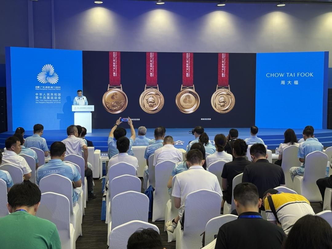 2025年6月10日上午10时,第十五届全国运动会奖牌“同心跃”发布仪式在位于广东奥林匹克体育中心的十五运会赛事指挥中心(MOC)二楼会议厅盛大举行,标志着全运会筹备工作迈入新阶段。