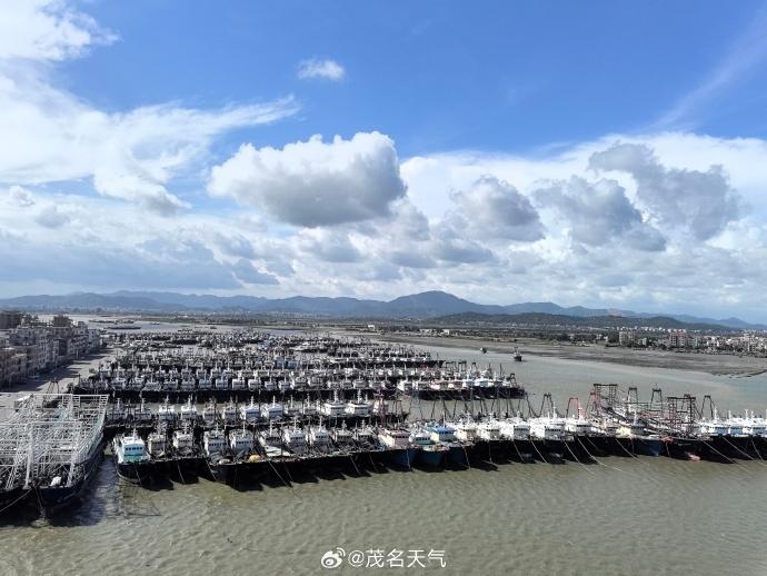 11日,茂名电白博贺港渔船收到气象部门台风预警信息,有序在港避风