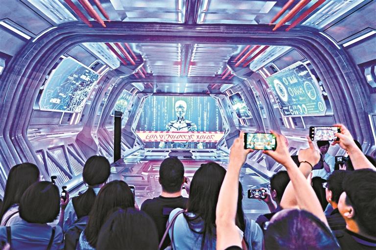 记者团走进广州励丰文化科技股份有限公司,参观展厅中的《未来之境》展示。