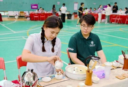 作为开放周首日的特别活动,华农还在现场同步展示了特色学科成果,包括自主选育的荔枝新品种“巨美人”“井岗红糯”,学子自主设计的机甲战车、动物和昆虫标本,还能亲身触摸体验竹节虫、蜥蜴、蛇等“异宠”,考生和家长还能现场免费品尝华农酸奶和荔枝、体验食堂午餐,生动展现了华农的科研实力和校园生活。