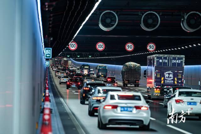 深中通道上人流、车流、物流川流不息。