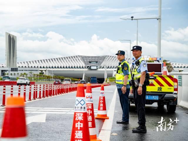 深中通道是世界首例特长双向八车道海底隧道、水下枢纽互通、海上特长特大桥梁组合工程,运营管理难度大,安全风险高。“在车流极大时,我们视情况采取远端导流、滴水式放行,近端优化车道、交替通行等措施,避免车辆长时间堵在海底隧道和海上长桥上,降低事故发生的概率,保障桥、隧车流畅顺,万一发生交通事故时也能得到快速救援处理,尽快恢复通行。”深圳市西部交警大队中队长李展艺说,在车流较大的情况下如果不进行管控,将极大增加交通事故发生的风险,一旦发生事故,通过时间将至少翻倍。