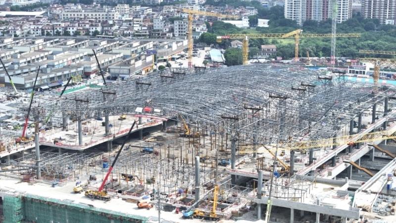 佛山站位于佛山市禅城区,属于国家“十四五”规划重点项目,由中铁建设、中铁城建、中铁二十五局联合施工。其总建筑规模达29.4万平方米,站房面积5万平方米,站场规模为4台9线(含预留1台2线),最高聚集人数为2500人,可承担年旅客发送量约600万人次。佛山站与京广、广汕、深南等数条(段)350公里时速高铁连通,建成后能够大幅缩短广州中心城区与周边城市的通行时间,届时佛山到湛江只需1.5小时,将成为佛山乃至粤西北上的新通道。