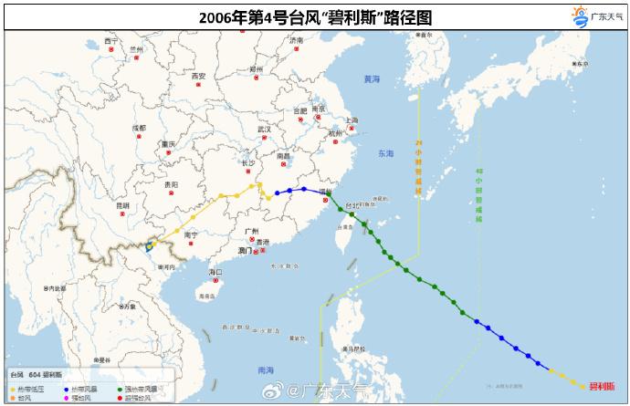 据@广东天气 和以往观测数据,台风“丹娜丝”与2006年第4号台风“碧利斯”有着相似路径。当时,“碧利斯”先后登陆台湾、福建,并横穿江西、湖南和广西,往西南方向移动。