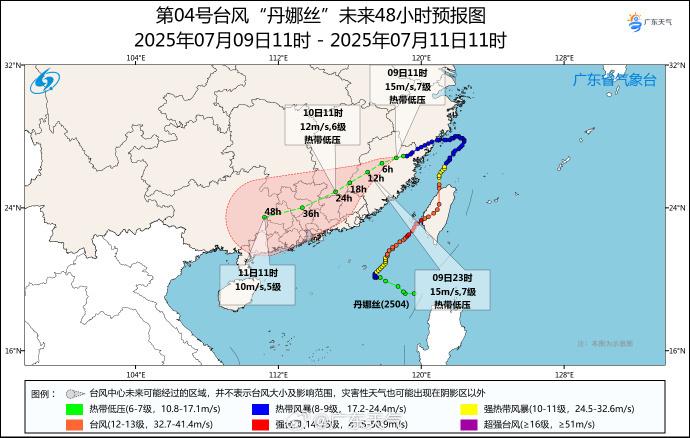 需要注意的是,“丹娜丝”将给广东带来的暴雨范围广、局地雨量大,需加强防范地质灾害和城乡积涝,关注福建等地上游来水叠加导致的山洪和中小流域洪水风险,还需防范雷电和短时大风灾害。