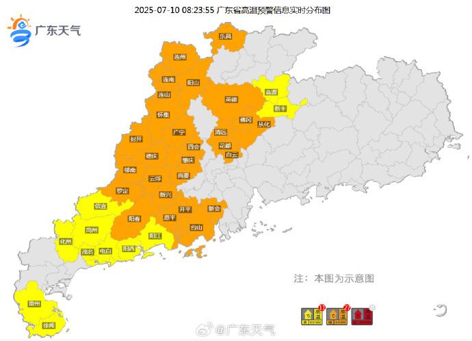 此外,高温与暴雨携手同行。截至8:23,全省共有38个高温预警信号生效中,请注意防暑降温,上班出门伞随身。