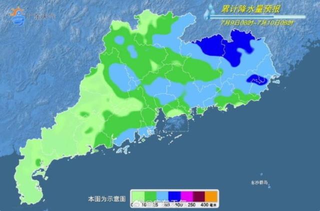 10日,粤北大部、珠三角中东部、粤东市县有暴雨局地(特)大暴雨,其余市县有中雷雨局地暴雨。