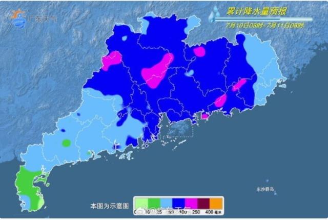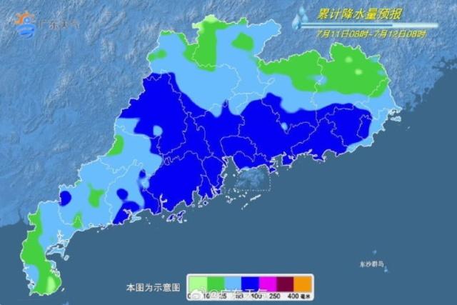 11日,清远和韶关南部、珠三角、粤东市县有暴雨局地(特)大暴雨,其余市县有中到大雨。
