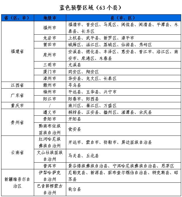 预计,7月10日20时至7月11日20时,福建南部、广东东部和西南部、云南东南部等地部分地区发生山洪灾害可能性较大(黄色预警),其中,福建南部、广东东部局地发生山洪灾害可能性大(橙色预警),预警区域涉及的县(市、区)见下表。其他地区也可能因局地短历时强降水引发山洪灾害,请各地注意做好实时监测、防汛预警和转移避险等防范工作。