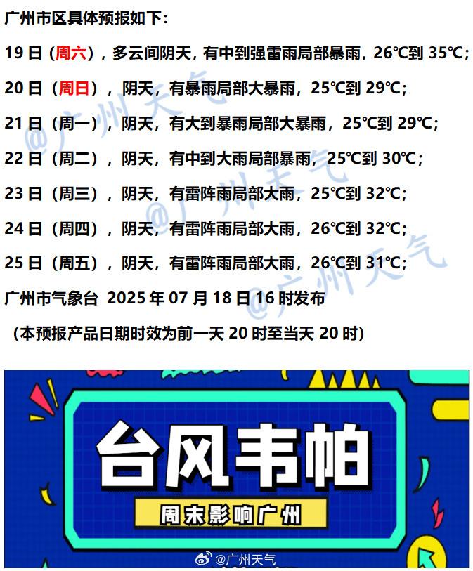 ●7月19日,广州有中到强雷雨局部暴雨,并伴有8-10级雷雨大风;