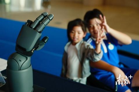 市民与仿生手互动。南方+记者 梁钜聪摄