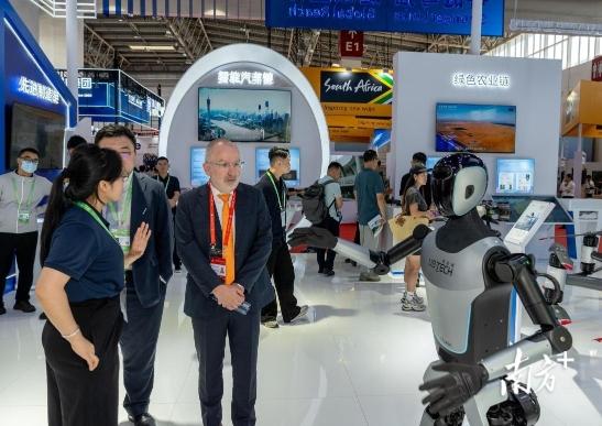 7月16日-20日,第三届中国国际供应链促进博览会在北京举办。广东展位内,境外观众正在了解来自广东的机器人。南方+记者 钟志辉 摄